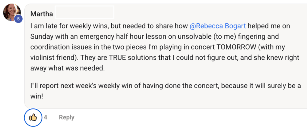 Hello Reader, I just posted a bite-sized excerpt from a recent member Q&A focused on issues around playing with the metronome. It covers: • How to feel the beat in your body (try swaying your head) • Easier ways to hear the beat • Exactly what to do when you get off the metronome If you find the clip useful, the full 90-minute Q&A goes much deeper and covers other member questions on topics such as how to avoid stretching in large intervals and choosing between a mordent and a trill in Bach....